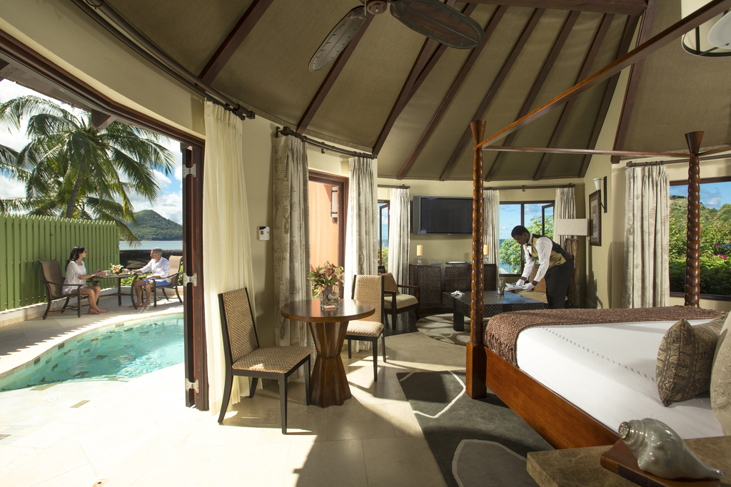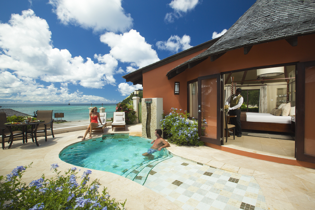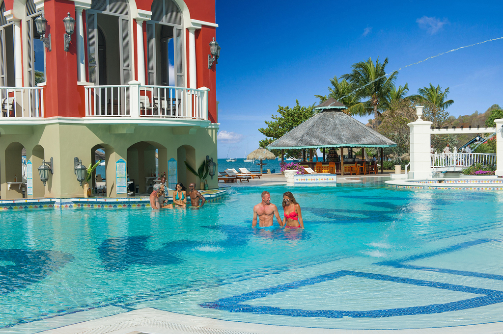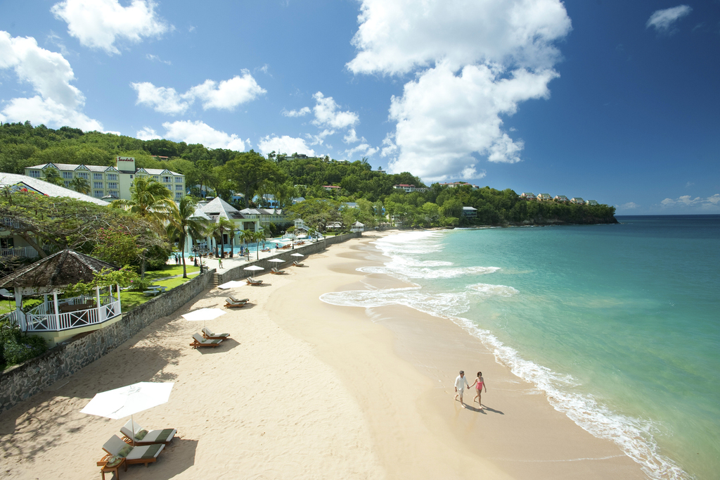 A 311-room, 17 acre Resort for couples only, sits on a spectacular peninsula, surrounded by the warm Caribbean Sea. Pigeon Island, home to our annual St. Lucia Jazz Festival, combines historic British & French flavor that unfolds at Sandals. The resort offers exotic Island & International culinary temptations at Twelve [12] Restaurants, Ocean & Beach view accommodations and a meandering Lagoon Swim-up Pool where guests can swim right up to their patio.