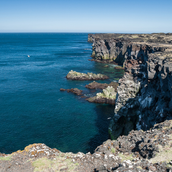 The village Grundarfjordur is situated on an exceptionally beautiful bay. The bay is nearly encircled by impressive and graceful mountains, which offer spectacular variations. French fishermen were granted a base in Grundarfjordur from 1800-1860 and they built a hospital and a church there during that period. Fishing and fish processing is the main occupation, commerce is important, and the tourist trade increases steadily and the village offers accommodations and caters to most of the tourists' needs. Whale watching cruises and deep sea angling are popular and good trout fishing is in nearby lakes. Grundarfjordur was a trading post throughout the centuries and ruins of the old trading houses can still been seen.