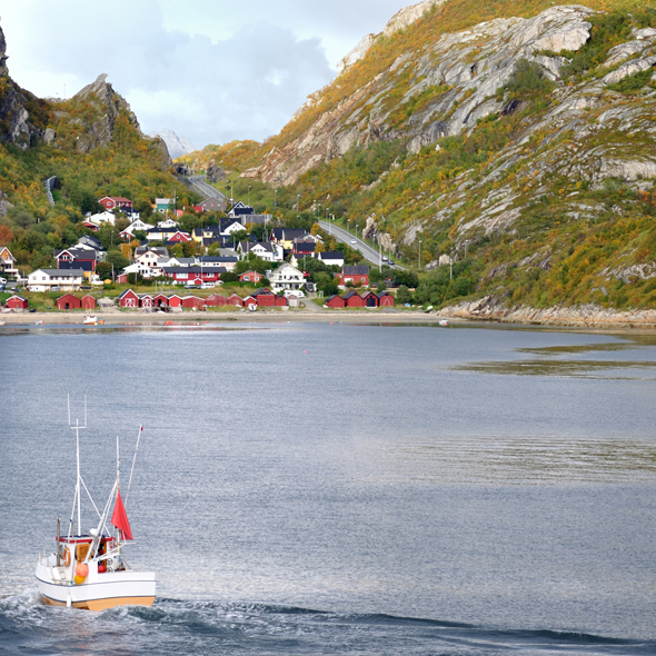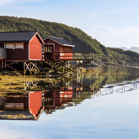 Nestled between the jagged range of Lofoten Islands is the tiny fishing hamlet of Gravdal with its wild, almost alpine grandeur. Fishing is still the main industry and many small villages with houses built on stilts over the water dot the landscape.