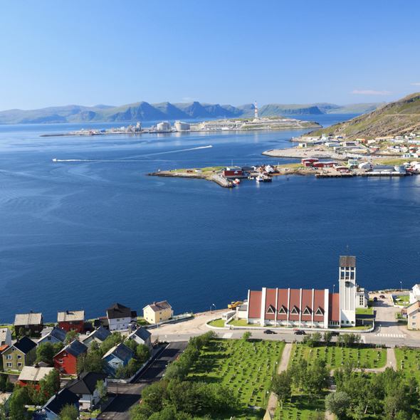 Hammerfest – the world’s northernmost town – is one of the most important travel destinations in North Norway. Over 250,000 tourists visit the town annually. The borough has approx. 9200 inhabitants, and a surface area of about 844 km2. It covers parts of the islands of Sørøya, Kvaløya and Seiland, and since it was awarded city status in 1789, it has been the natural centre of the region. Trade and industry is characterised by fishing, fish processing, the Snøhvit field (LNG), service industries and tourism.