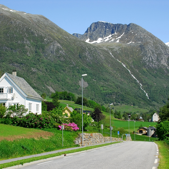 Situated along the innermost arm of the Nordfjord, this picturesque village of western Norway is surrounded by some of Scandinavia´s most captivating scenery. Here lies the largest glacier in all of Europe, the Jostedal, towering nearly 6,200 feet over a deep valley. The green fields, serene lakes and cascading falls of this region are simply breathtaking.
